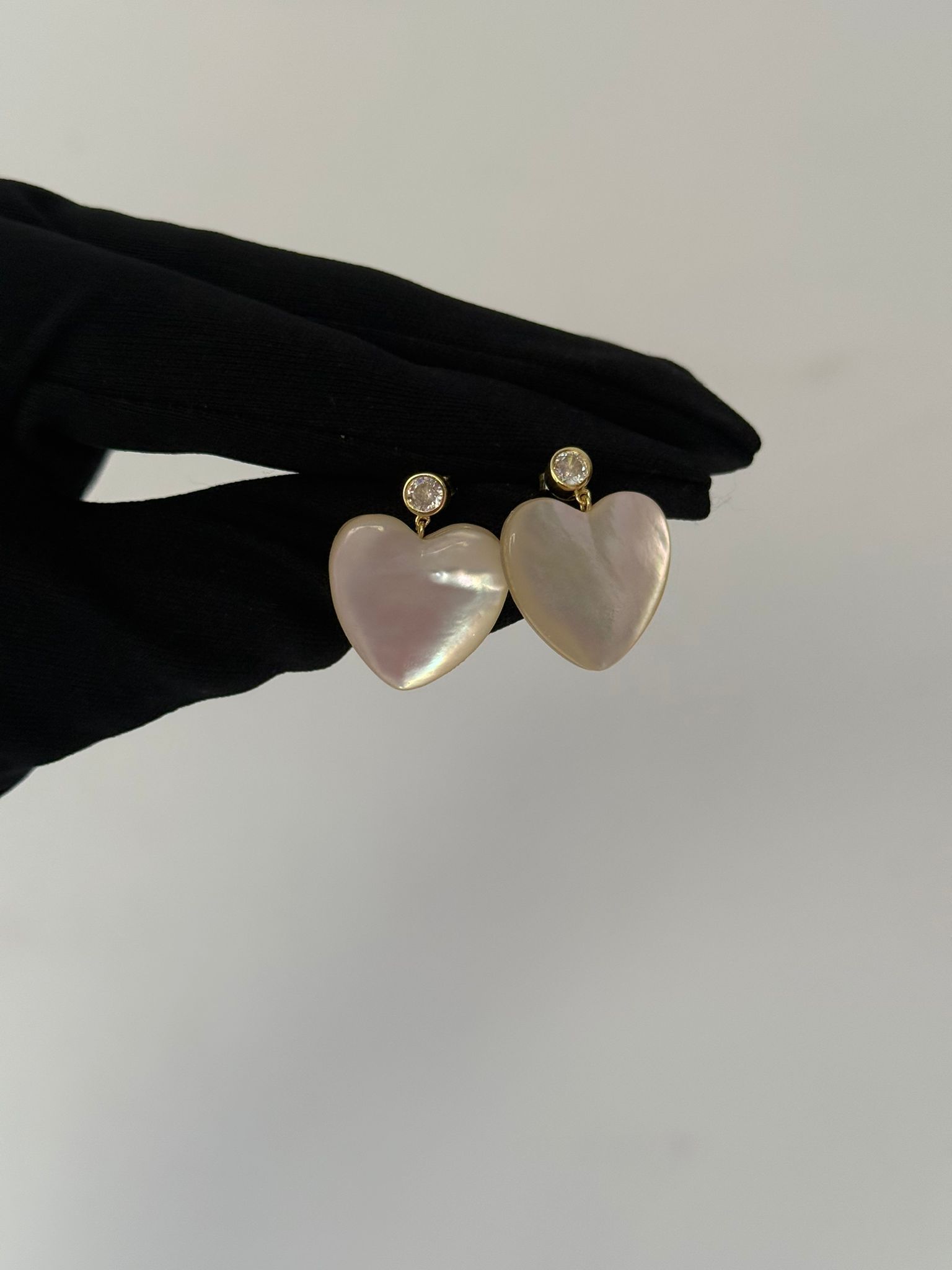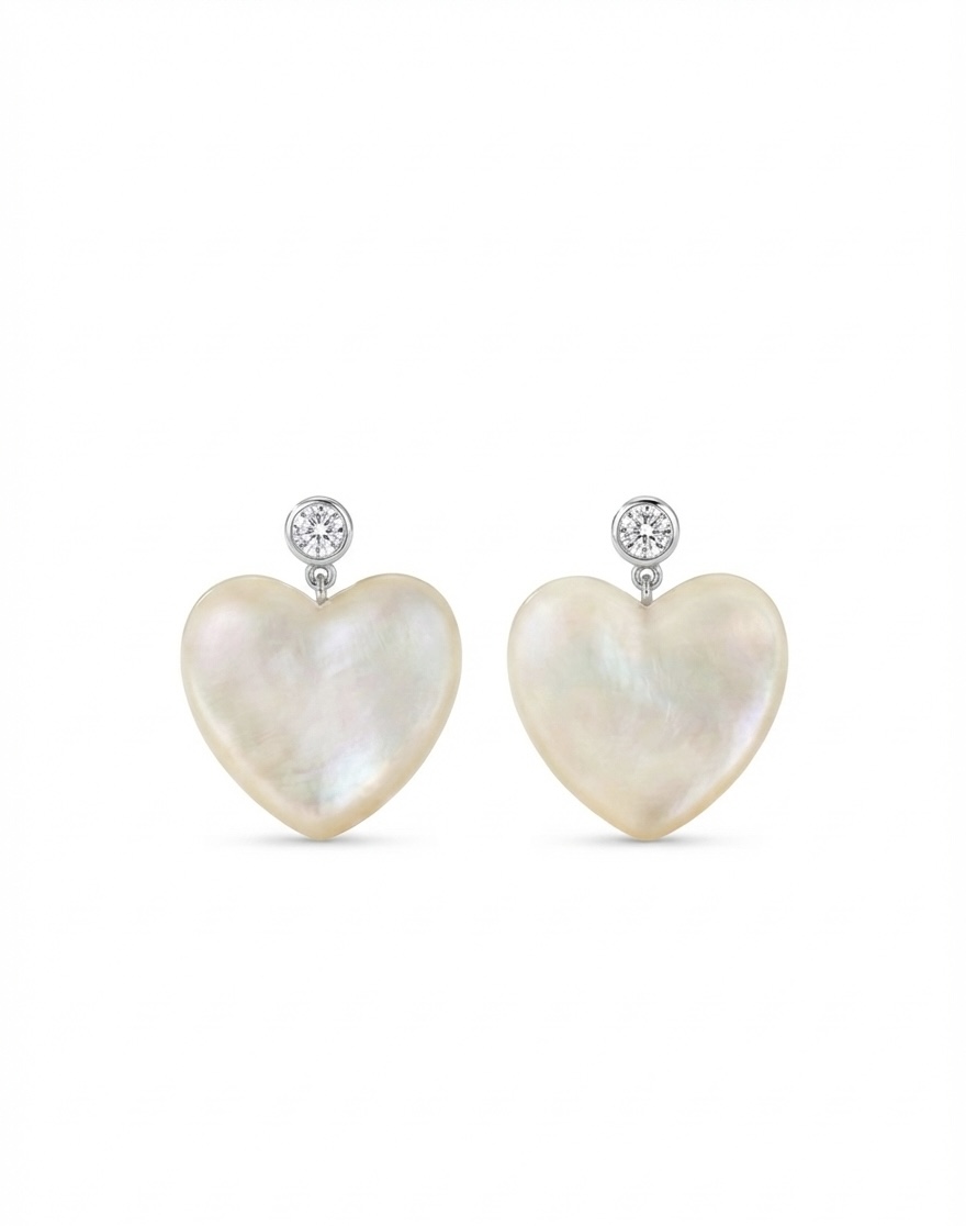הלב עשוי מצדף טבעי בגימור חלק, המשדר רכות ונשיות. הזרקוניה הבוהקת שבמרכזו מוסיפה נצנוץ מדויק ומודרני. יחד, שני החומרים יוצרים איזון בין רוך לאור.