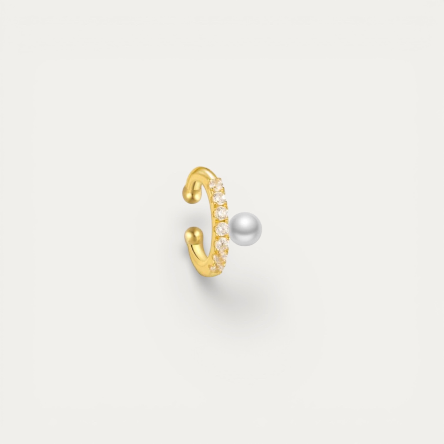 עגיל Elix ללא חור מעניק מראה יוקרתי גם בלי ניקוב באוזן. הוא עשוי כסף 925 בציפוי זהב 14 קארט ומשובץ באבני מואסיניט נוצצות ובפנינים מתורבתות. בזכות השילוב בין הברק של האבן לזוהר הרך של הפנינה, מתקבל מראה עדין ואלגנטי.