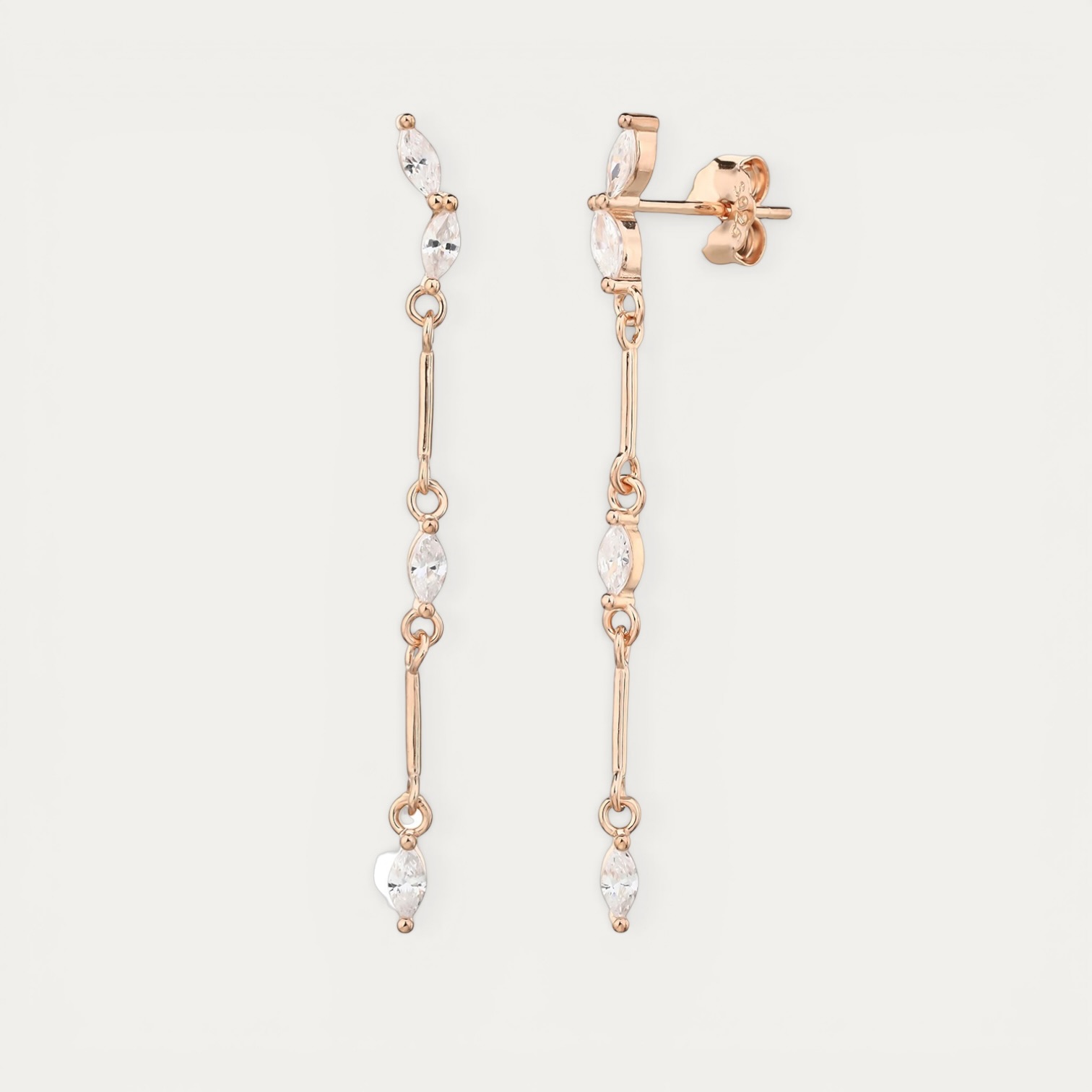 התאהבי בתנועה העדינה של דגם Cascade Rose. אלו עגילי רוז גולד ארוכים ונופלים באורך 4 ס"מ. הגוון החם מאיר את הפנים ברכות. העיצוב משלב אבני זרקון ומוטות דקים. השילוב הזה יוצר מראה של טיפות אור. יצרנו את העגילים מכסף 925 בציפוי איכותי. כך הברק נשמר לאורך זמן.