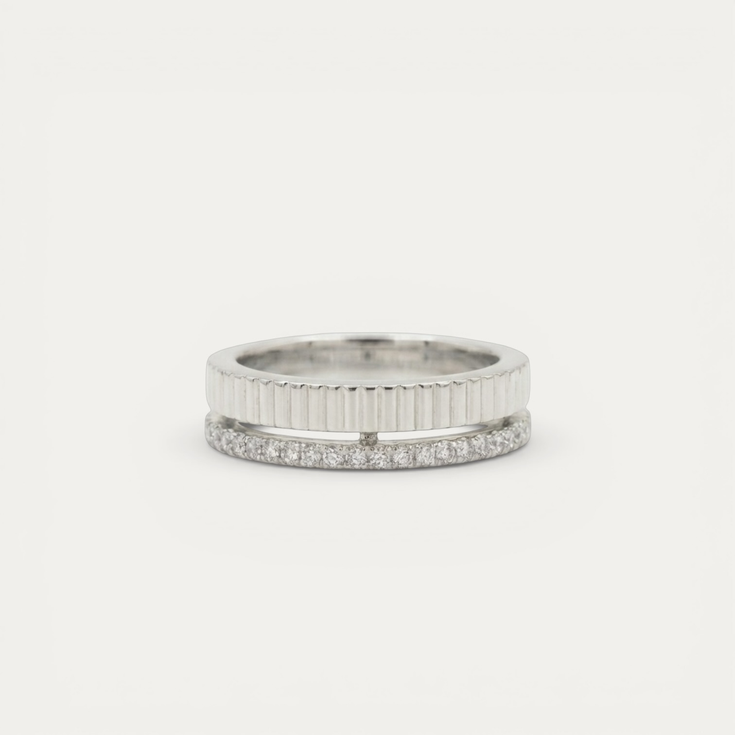 טבעת Dual Layer חגיגה של טקסטורות, כסף 925 וזירקונים