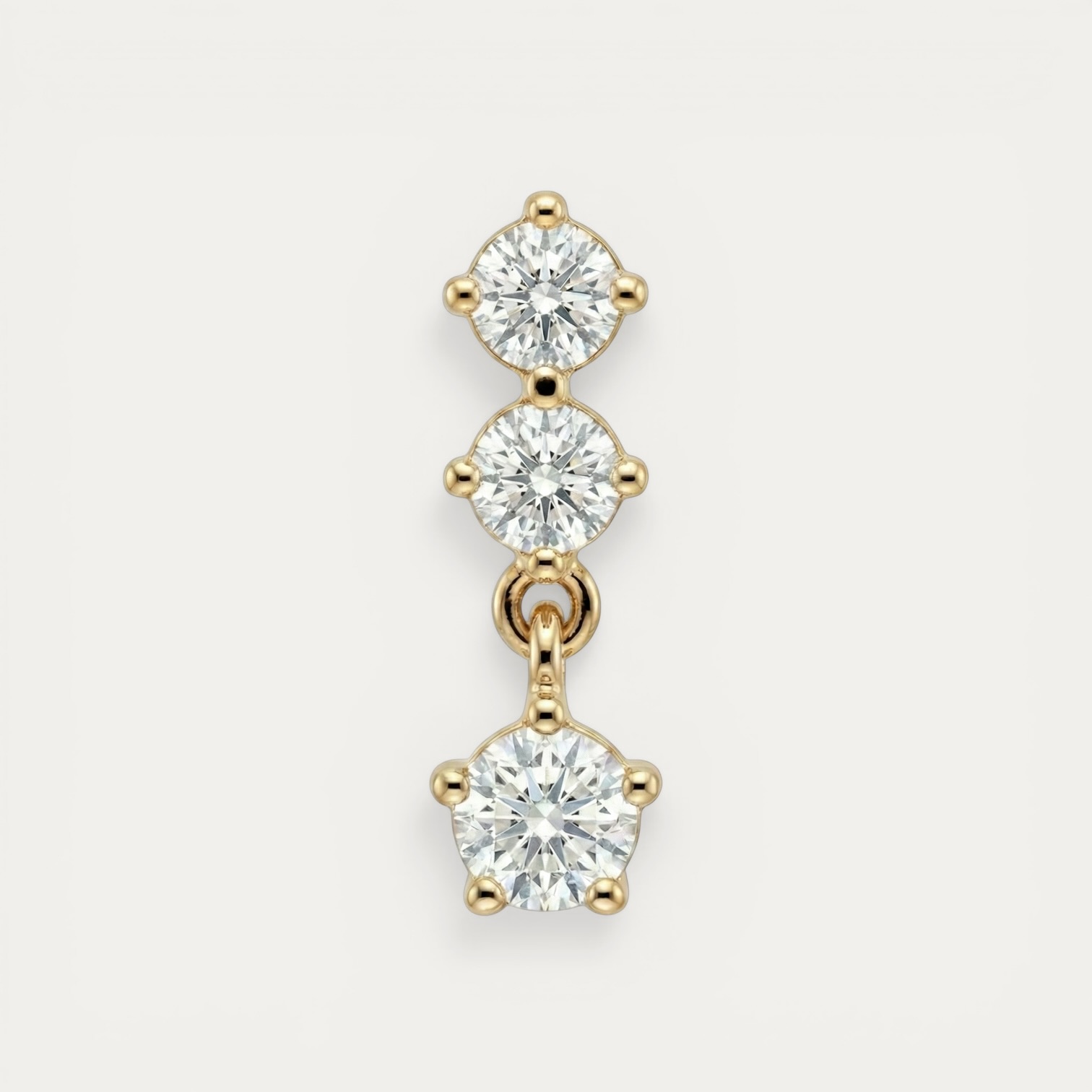 המידות המדויקות האורך הכולל של עגיל פירסינג זהב זה הוא 12 מ"מ. מידה זו בולטת מספיק כדי למשוך תשומת לב. אולם, היא נשארת עדינה ולא מכבידה על האוזן. השילוב בין הגדלים השונים של האבנים יוצר פרופורציה מושלמת.