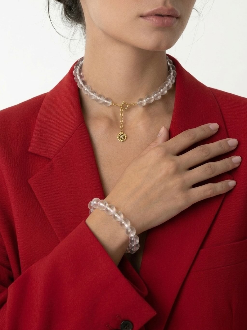 שלבי את שרשרת Clear עם עגילים עדינים או טבעת עם אבן שקופה למראה רך ואלגנטי. היא מושלמת לשילוב עם לבוש בגווני לבן, בז’ או זהב.