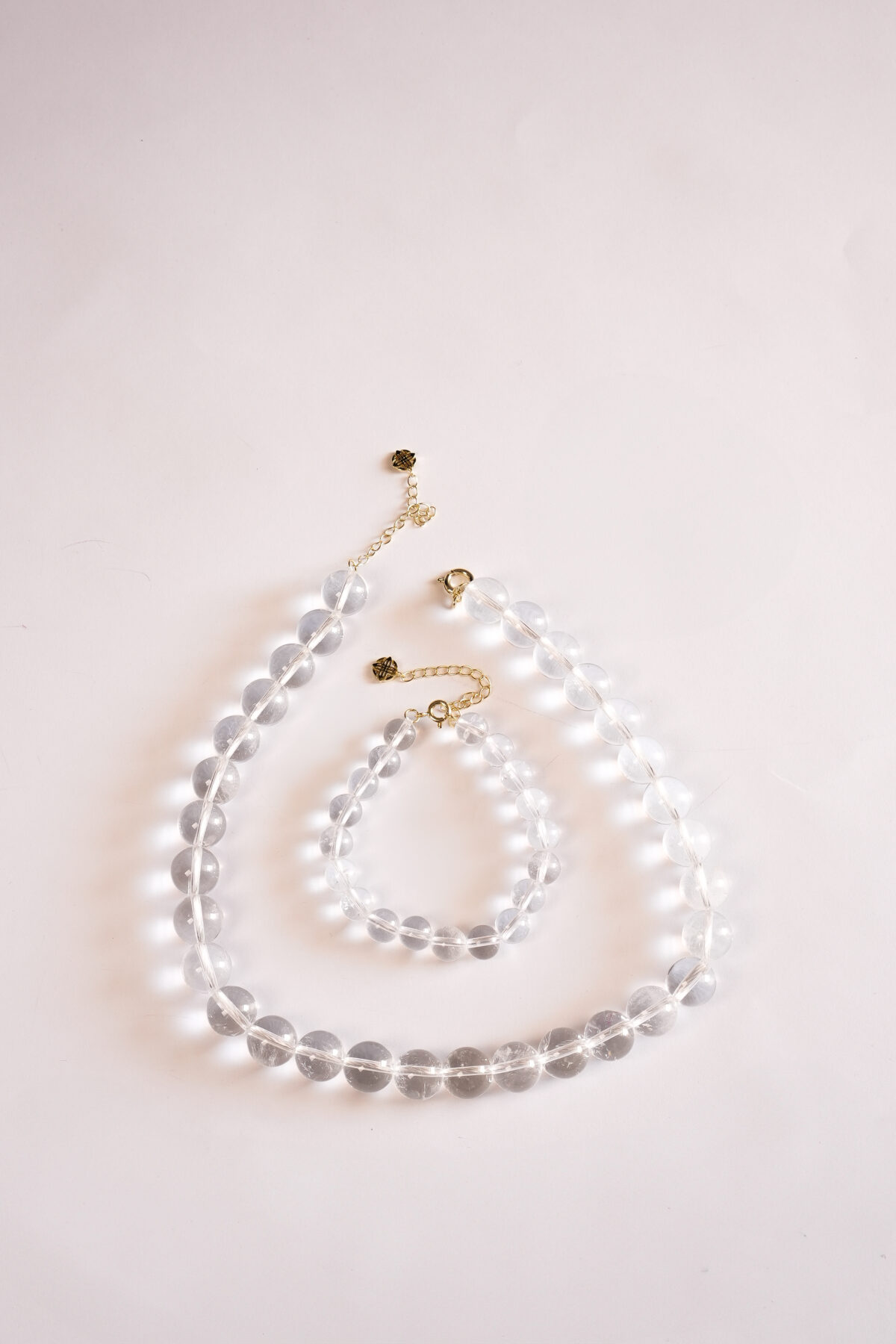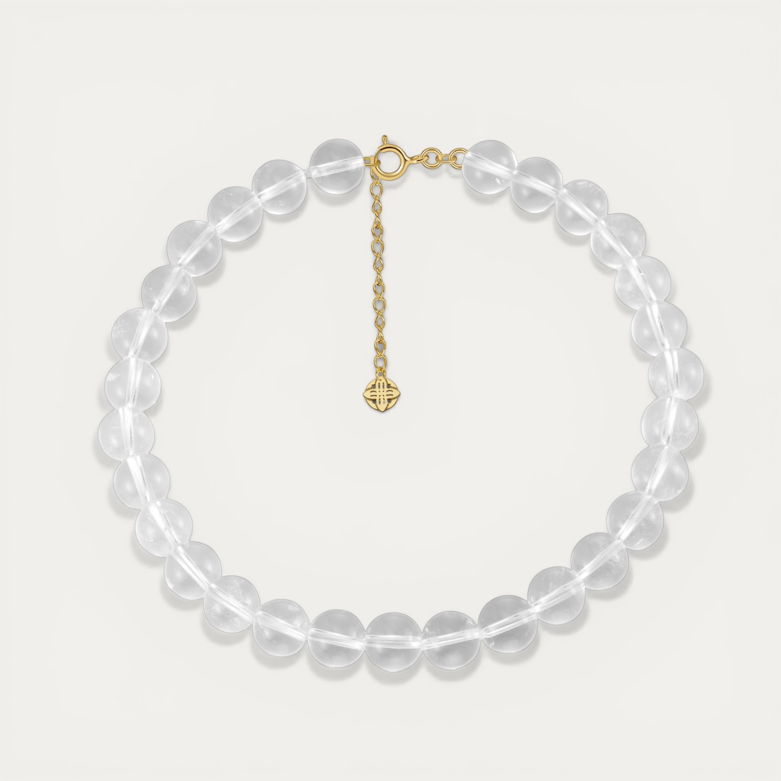 שרשרת Clear עשויה מאבן קוורץ טבעית שקופה בגודל 12 מ"מ, עם סוגר כסף 925 בציפוי זהב 14 קראט. תכשיט שמאיר כל מראה באלגנטיות.
