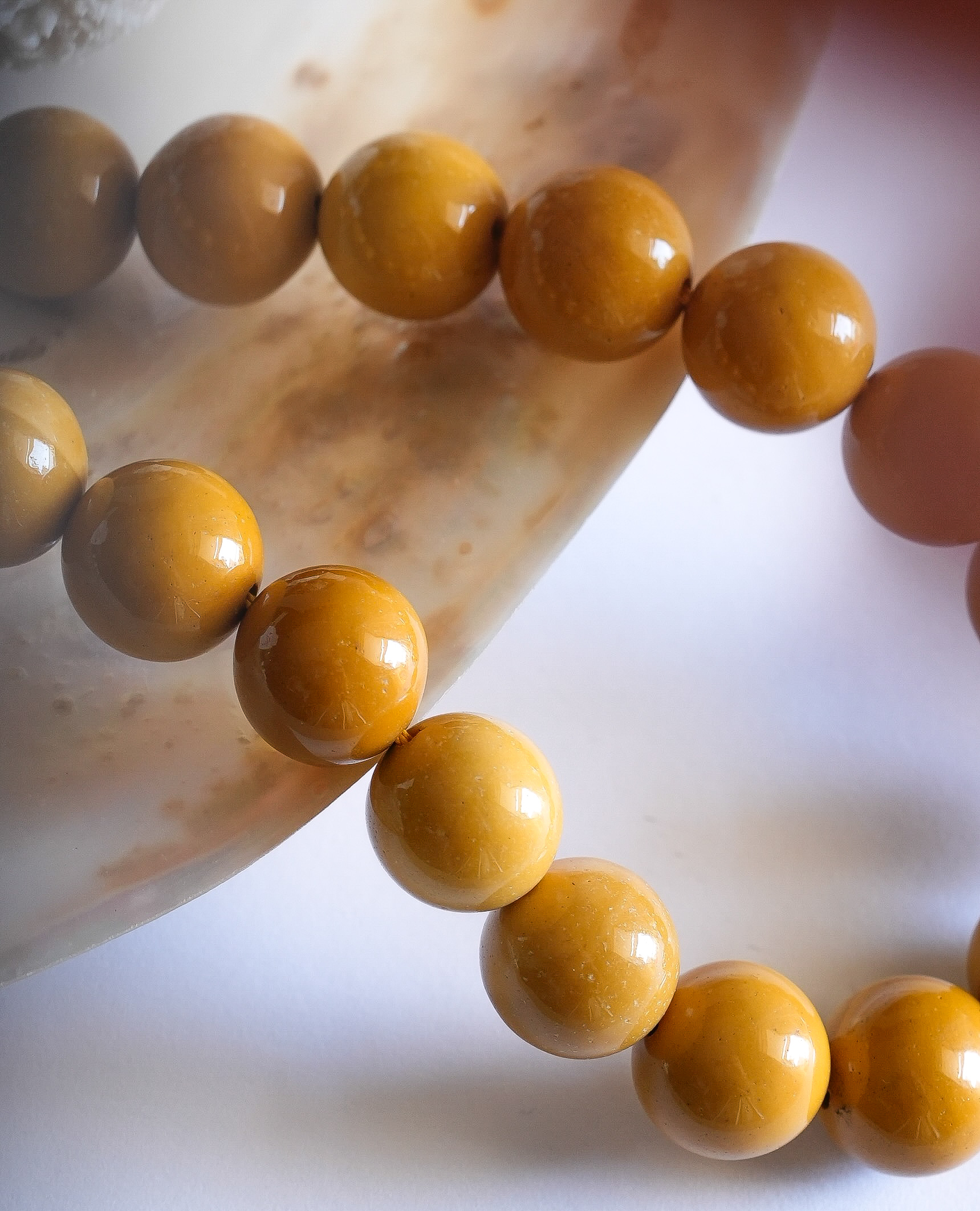שרשרת Mokit משלבת אלגנטיות טבעית עם נגיעה חמה של צבע. אני מעצבת אותה מאבני Mookaite טבעיות בגוון צהוב עמוק, שכל אחת מהן בגודל 12 מ"מ. הצבעים הבהירים והחמים יוצרים מראה מאוזן, מלא אנרגיה ורכות.