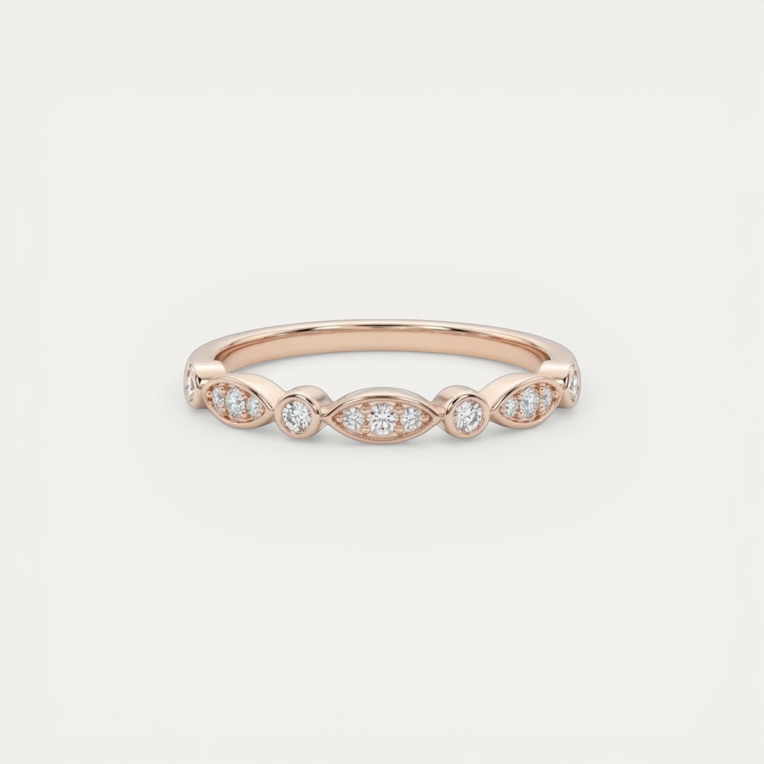 טבעת מרקיזה רוז גולד Starburst – עיצוב מלא ברק של פלדת אל חלד, רוז גולד וזירקונים
