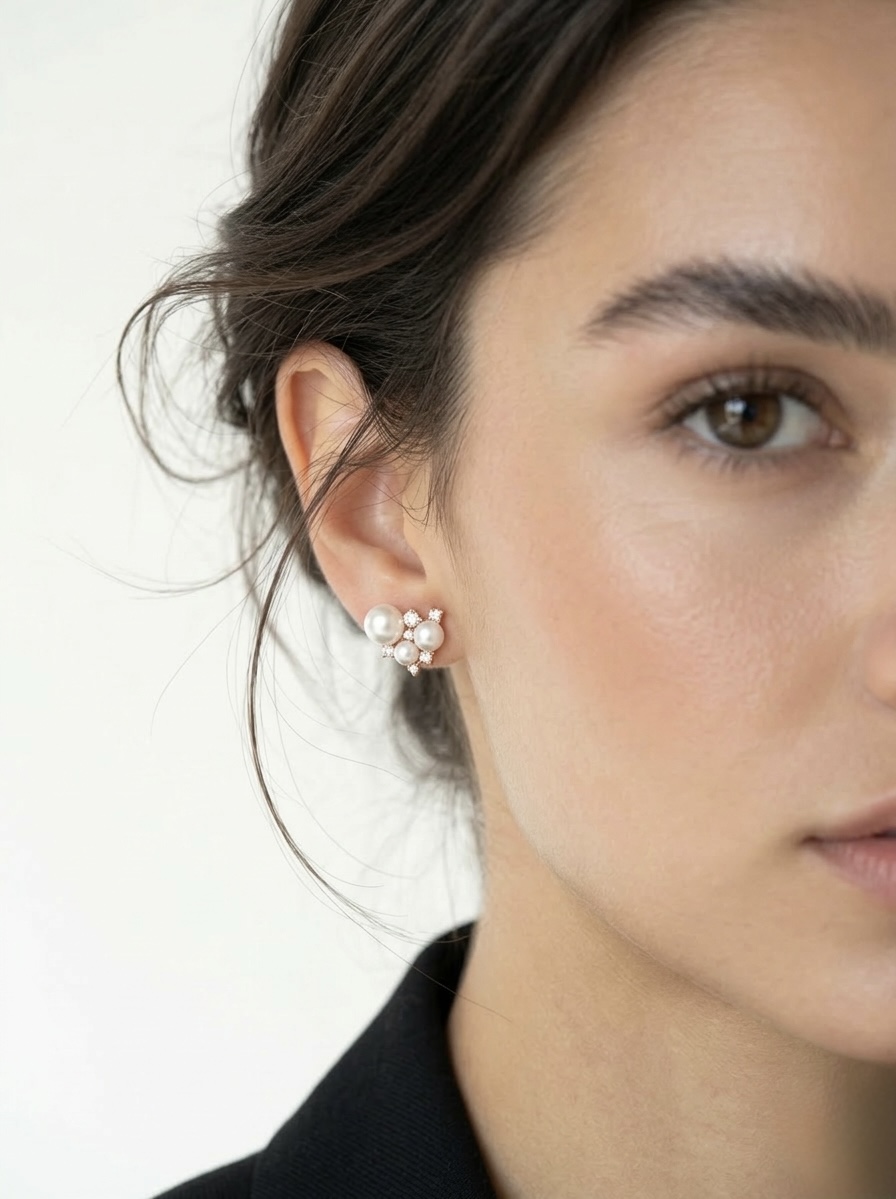 יוקרה שנשמרת לאורך זמן. עגילי Pearl Cluster הם עגילי פנינה ציפוי זהב 14K על בסיס פלדת אל חלד עמידה. שילוב של פנינים וזירקונים בעיצוב אשכול, עמיד במים והיפואלרגני.