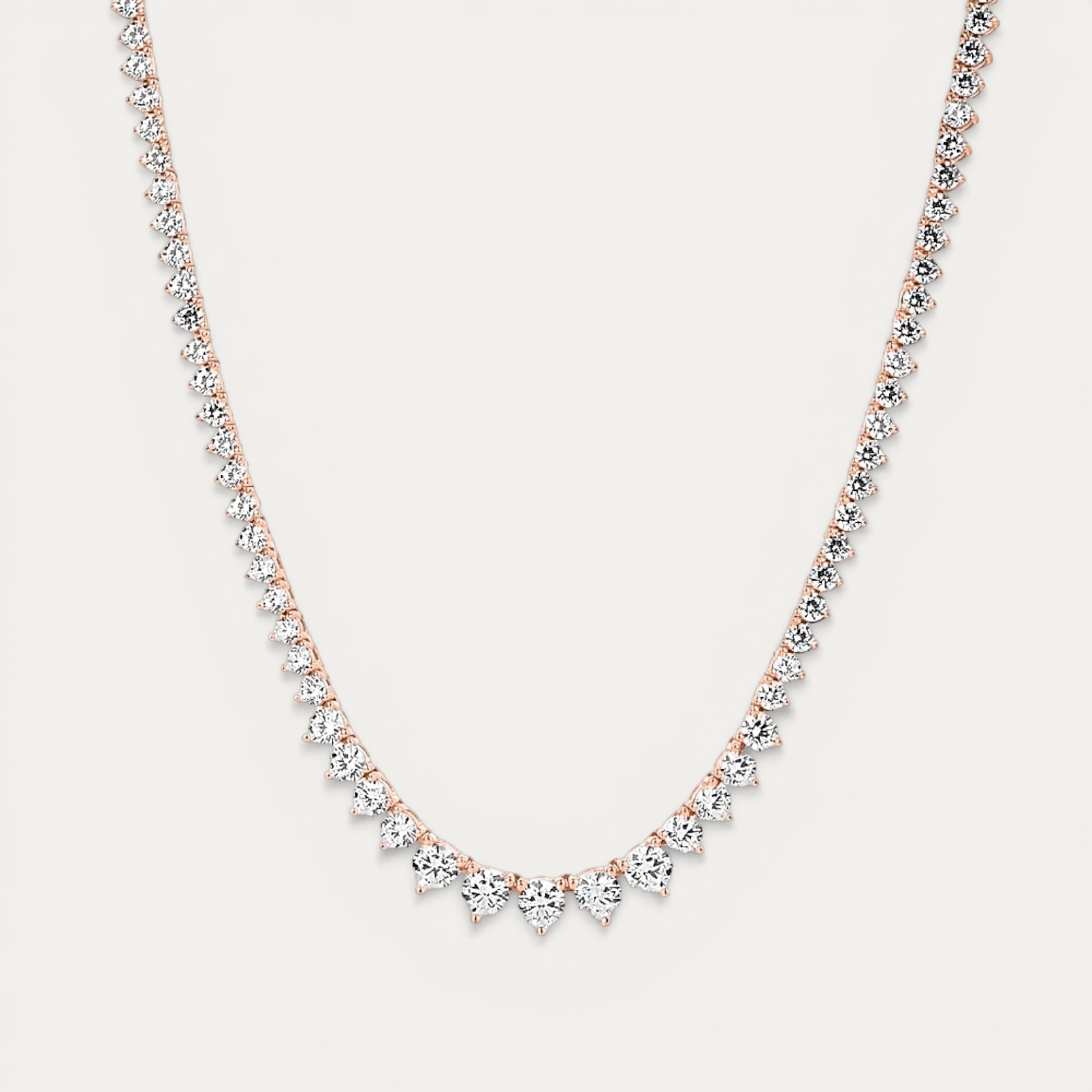 שרשרת לבבות מדורגת רוז גולד יוצרת מראה רומנטי ויוקרתי. מכיוון שבחרנו עיצוב מדורג, האבנים גדלות בהדרגה לכיוון המרכז. בנוסף, בחרנו בחיתוך לב מיוחד לכל אבן. לפיכך, השרשרת מושכת את העין ומחמיאה מאוד לקו הצוואר.