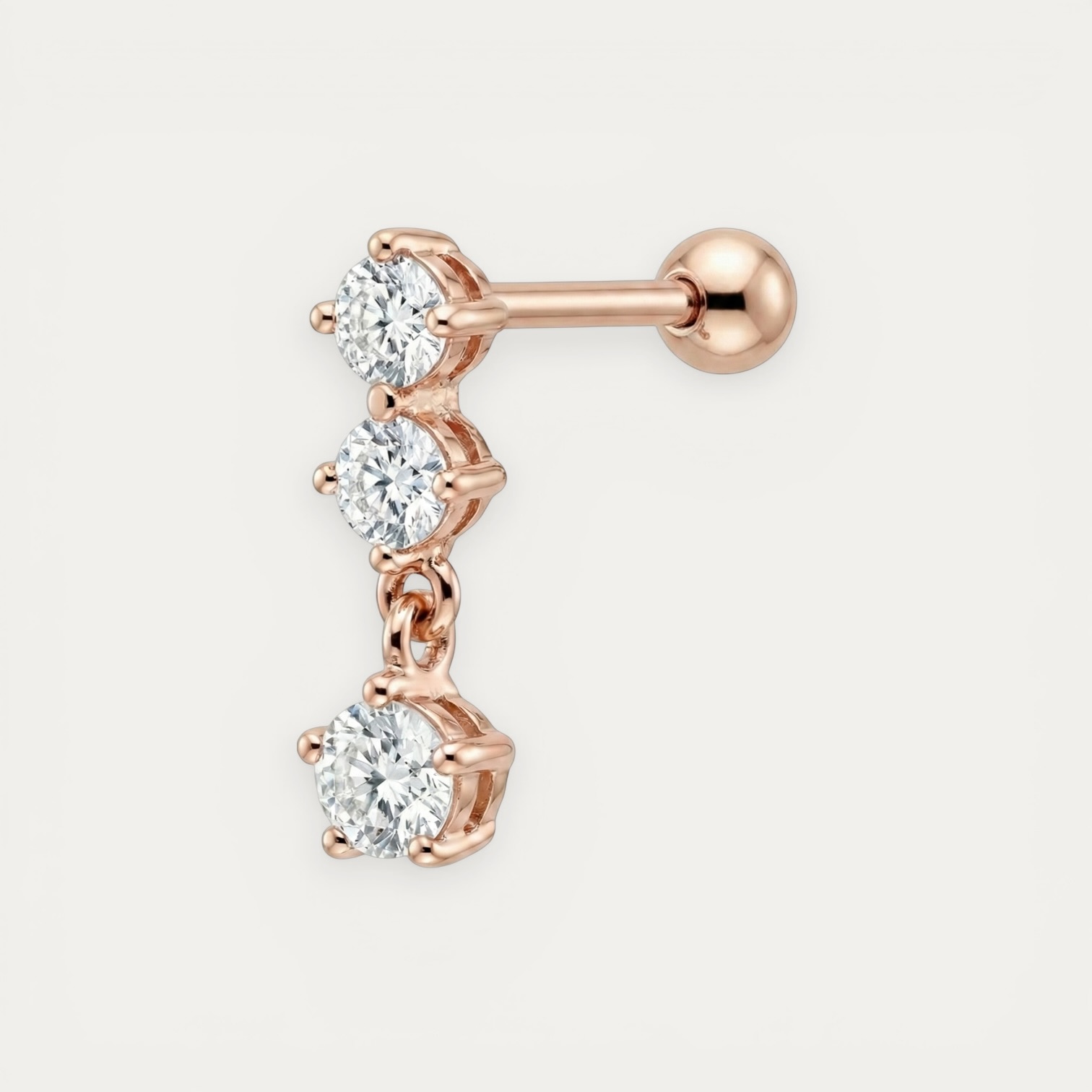 עגיל Triple Zircon Rose Gold Piercing