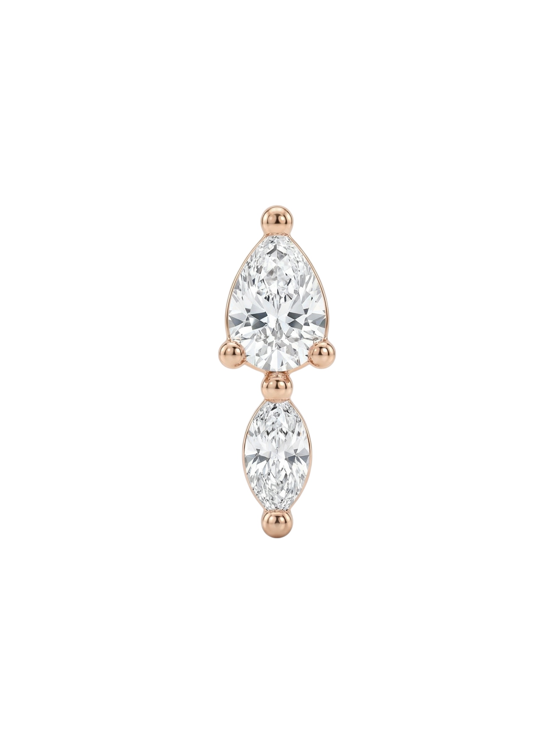 בחרנו לשלב שתי אבנים בחיתוכים שונים (טיפה ומרקיזה) בצורה אנכית. בנוסף, השילוב בין גוון הזהב האדום לנצנוץ השקוף של הזרקונים יוצר ניגודיות יפהפייה. כתוצאה מכך, העגילים מושכים את העין ומאירים את הפנים ברכות.