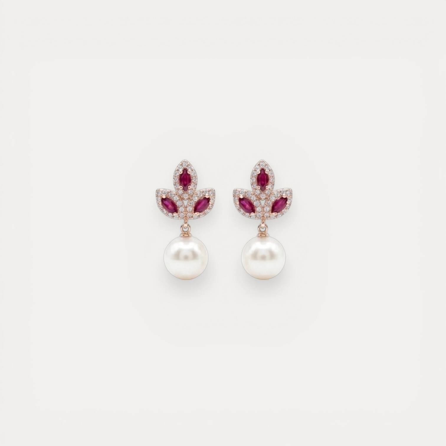 דגם: Royal Blossom Pearl & Zircon Earrings.