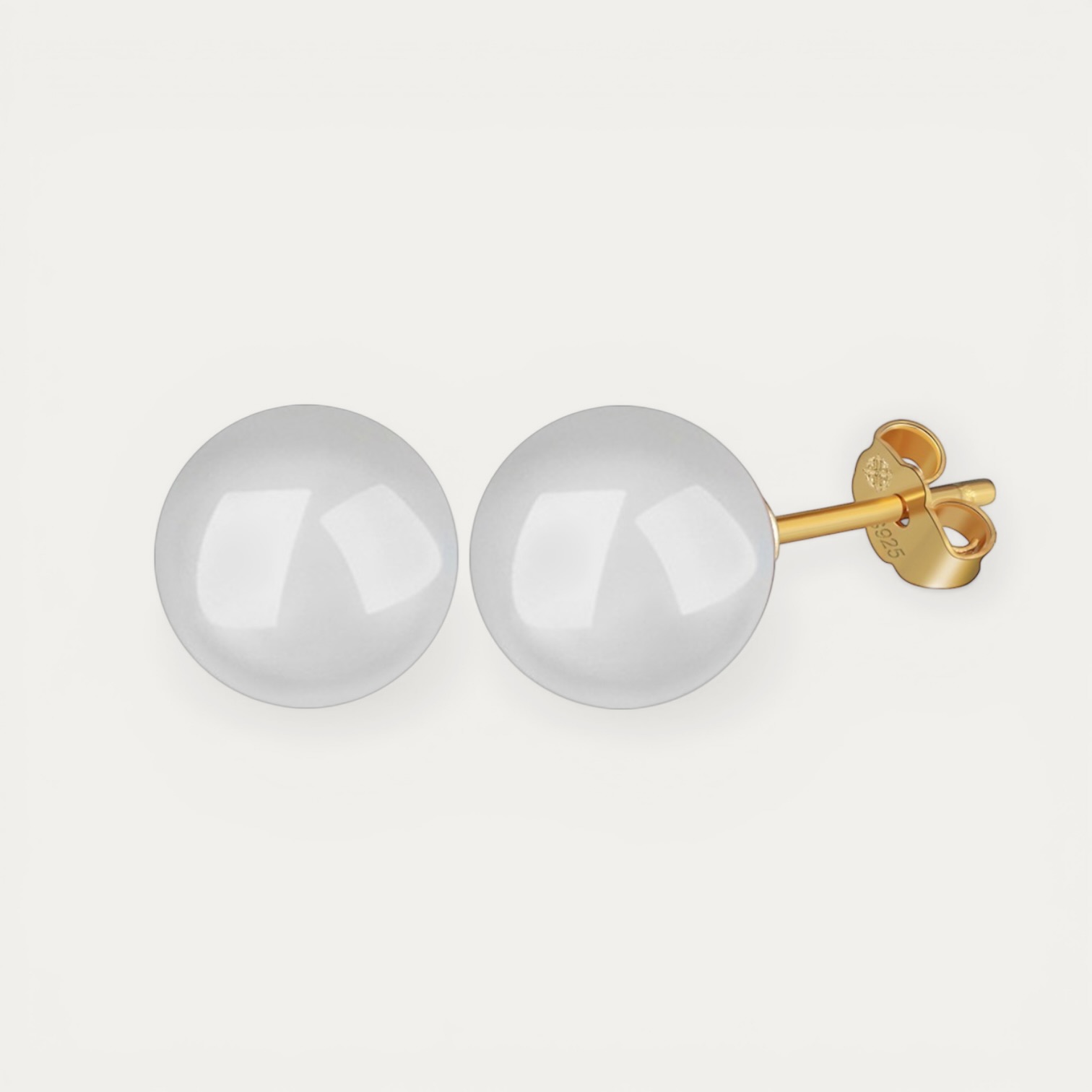 עגילי Shely עשויים אבן חן טבעית מסוג אוניקס לבן בגודל 10 מ"מ עם סוגר כסף 925 בציפוי זהב 14 קראט. עגילים נשיים ואלגנטיים לכל מראה.