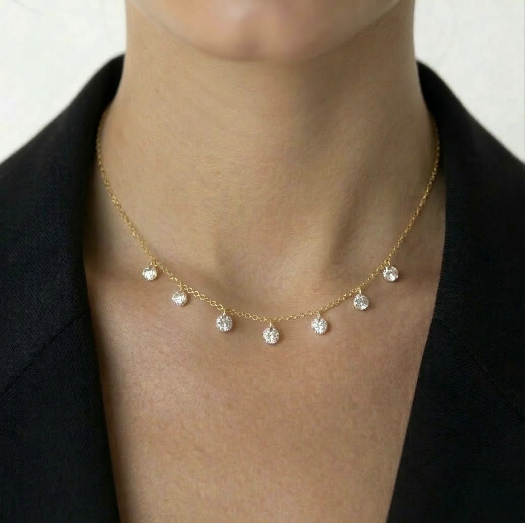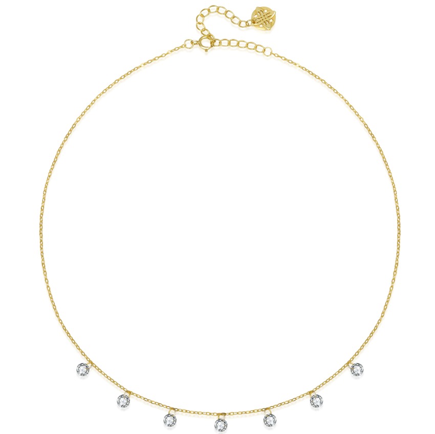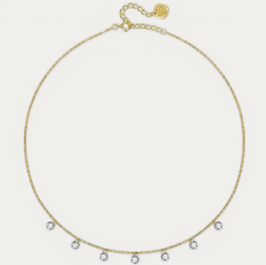 שרשרת Gleam כסף 925 עם זרקונים קדוחים בציפוי זהב 14 קראט. באורך 35+5 ס"מ – יושבת בדיוק במקום הנכון על הצוואר.