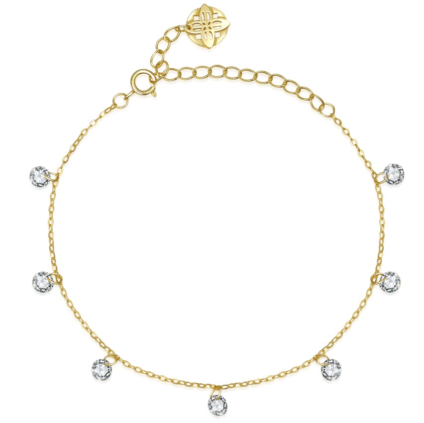 צמיד Gleam עשוי כסף 925 בציפוי זהב 14 קראט, עם 7 זרקונים קדוחים ואורך מתכוונן.