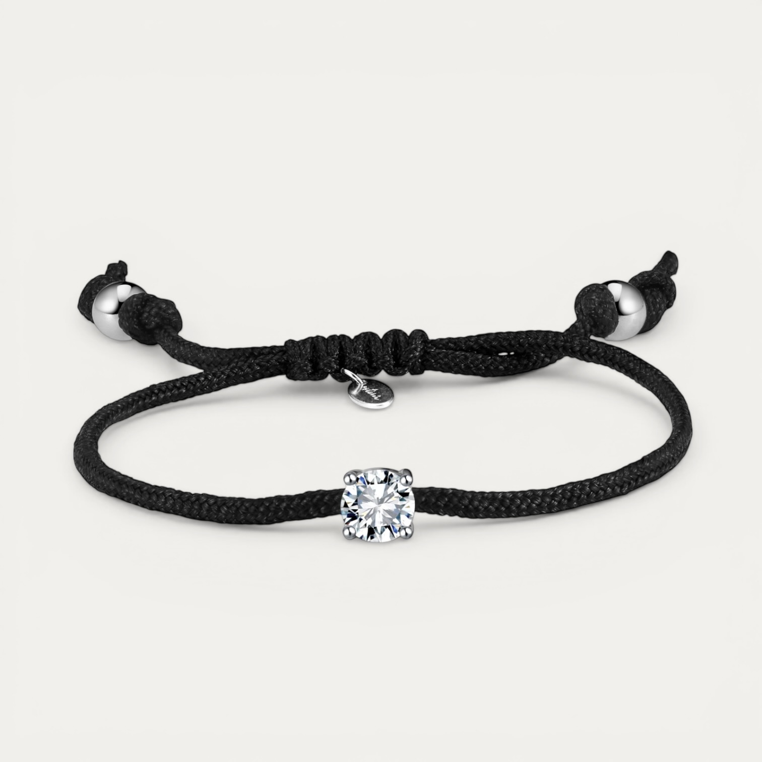צמיד כסף 925 עם חוט שחור עדין ואבן מואסיניט מרכזית. שילוב אלגנטי של יוקרה ופשטות שמוסיף נגיעה אישית לכל מראה.